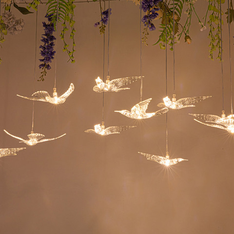 결혼식을위한 새로운 디자인 갈매기 샹들리에 비행 조류 교수형 투명 천장 샹들리에 펜던트 조명