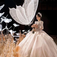 새로운 결혼식 장소 레이아웃 일시 중단 된 천장 웨딩 소품 10 헤드 빛나는 우산 샹들리에 웨딩 소품